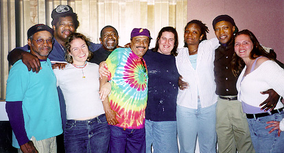The Persuasions and Mary Schmary. Left to right: Jayotis Washington, Jerry Lawson, Desiree Pointer, Joe Russell, Jim Hayes, Cynsa Bonorris, Myriam Casimir, Ray Sanders, Alyn Kelley