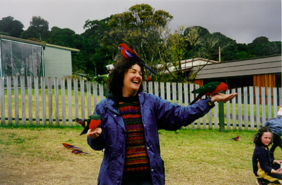 rosellas; the ones in Rita's hands are Rainbow lorikeets.