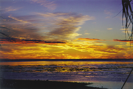 For the first time, we felt like we were on the Tropic of Capricorn. Thirty miles away in every direction were billowing white clouds behind thick banks of dark gray clouds, but all around Heron Island the sky was an unbroken blue. There were sunbathers on the beach! People were in the water all around, and the breeze was gentle and pleasant.