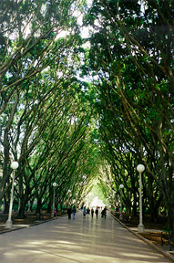 We arrived in Sydney at 6:30 am Saturday (losing one entire Friday en route) and took a bus directly to the hotel. It was way too early to check in, so they locked up our belongings and led us to the pool/spa on the second floor to change out of our formal travel clothes. We walked and walked, checking out the district, and decided we had come to exactly the right place for us. The guidebook says this district is heavily gay and lesbian, which may be a problem for some visitors; for us, it means lots of great restaurants, weird shops, a surfeit of Internet cafes, and a really interesting street scene.